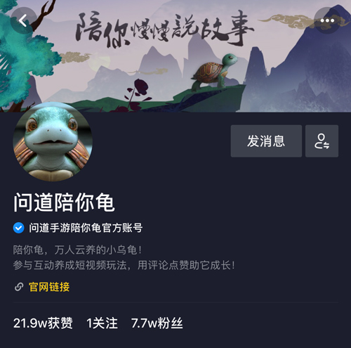 “问道陪你龟”是《问道》手游在抖音平台发起的视频新玩法,定义为“万人参与的互动云养龟”。这个别开生面的玩法也是《问道》手游在IP运营上的新尝试——抛开《问道》手游的主线剧情,由观看者的选择来决定陪你龟的剧情走向,再植入相应的《问道》世界观。