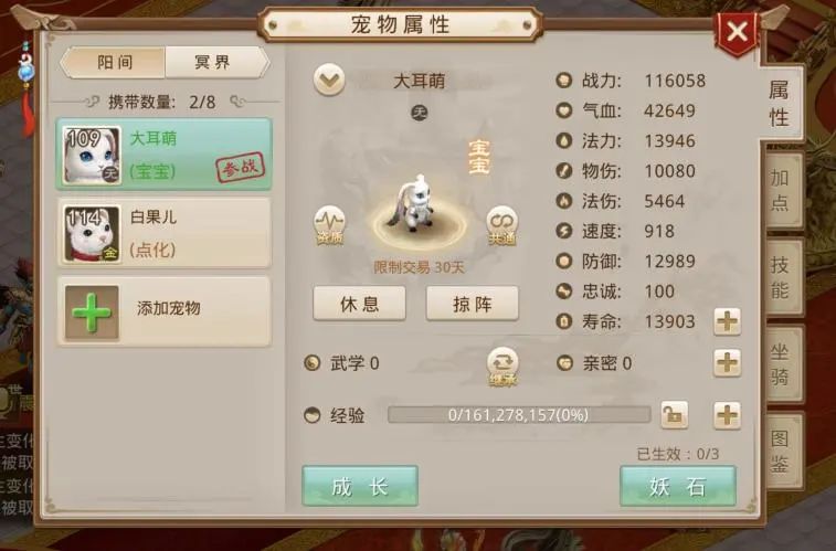 03 选择一只属性比较好的的鬼宠共生,共生的鬼宠越好,给阳间宠物加的属性就会越高。