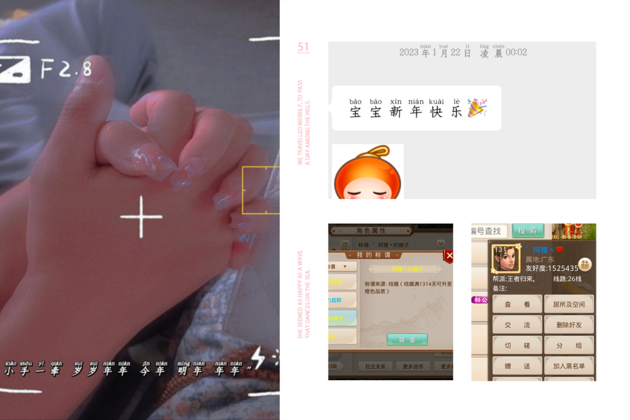 我们固定队的小群一天有几百条消息,虽然都在全国各地但都有共同的话题。祝我们的队伍友谊长存,今年有你们年味足足的!祝大家都能在中洲遇到跟我一样的友谊!