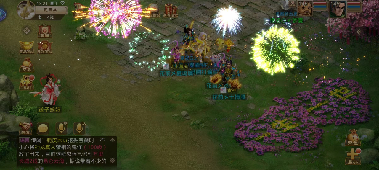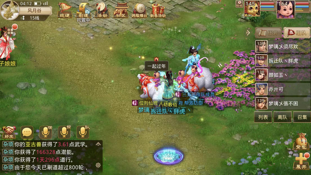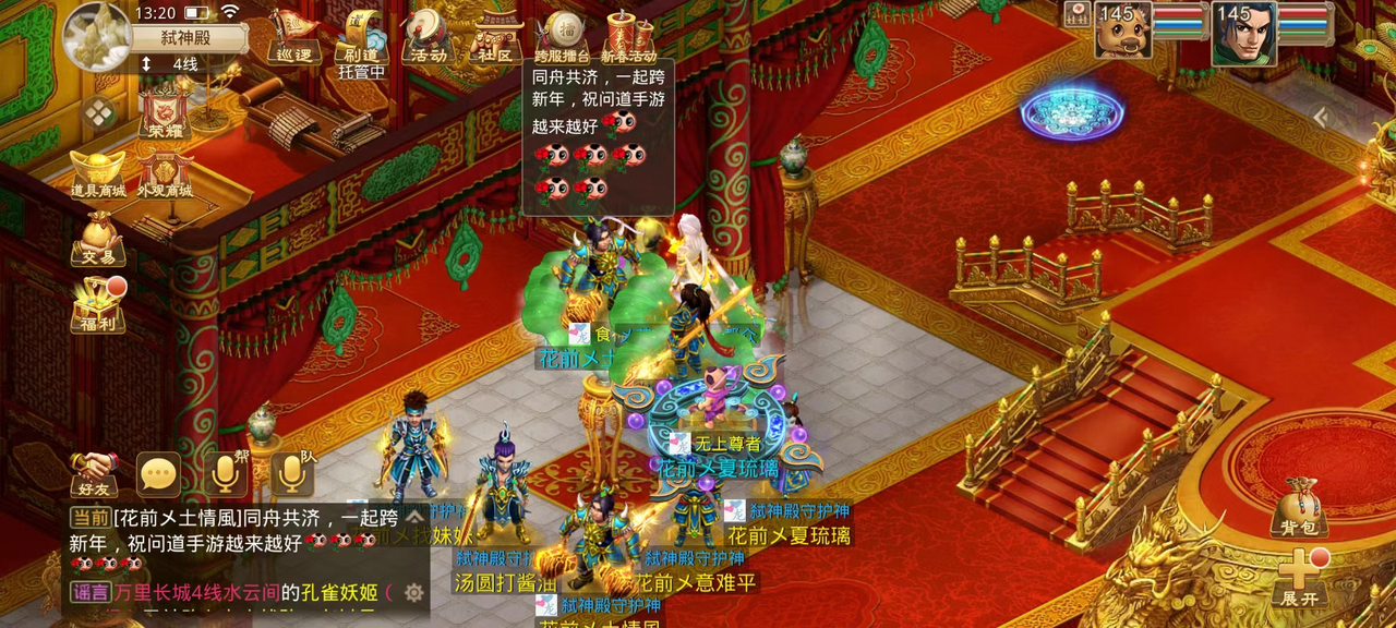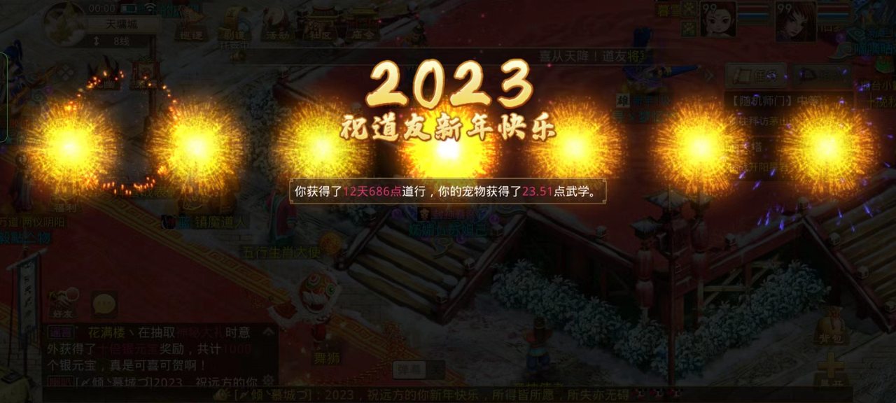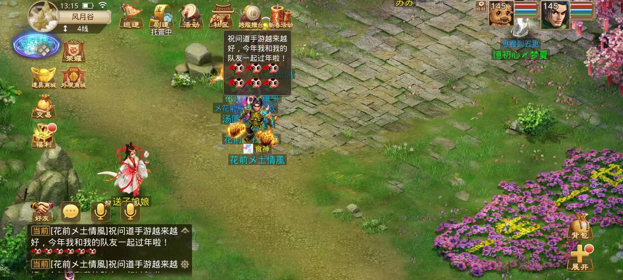 我是我们帮派的帮主,之前都是跟帮派道友一起过年的~我玩了6年手游,在游戏中认识了好多道友,也一起过了6个春节!每次都会有好多帮派道友刷喇叭发祝福,特别温馨!