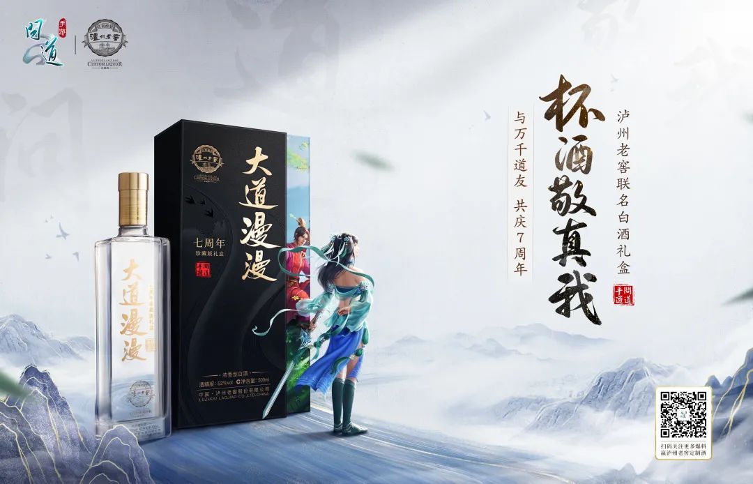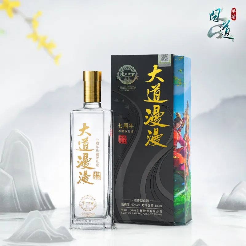 问道手游携手泸州老窖,给各位道友带来了,“大道漫漫”主题的联名白酒礼盒!