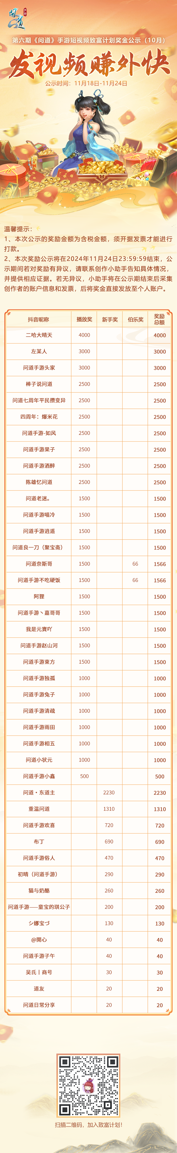 制作全民争霸赛相关短视频还有机会得丰厚奖励哦!快来看看已经参与了活动的道友10月赚了多少外快吧~