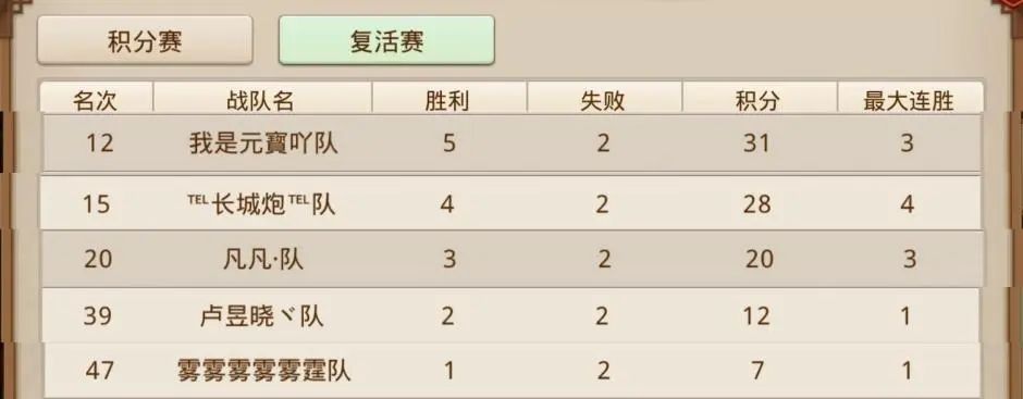 他们还耗时23分钟,历经28回合击败了热门队伍我是元寳吖队,成为倒数第3位离场的队伍。不过也正因为这场胜利耗时太久,没能拿到更多积分,在大家以为他们要以黑马之姿成功复活时,最终复活赛积分仅排在第6名。