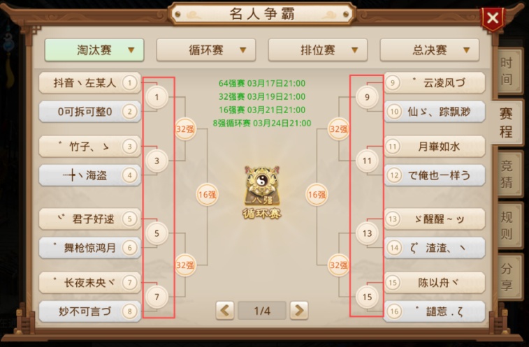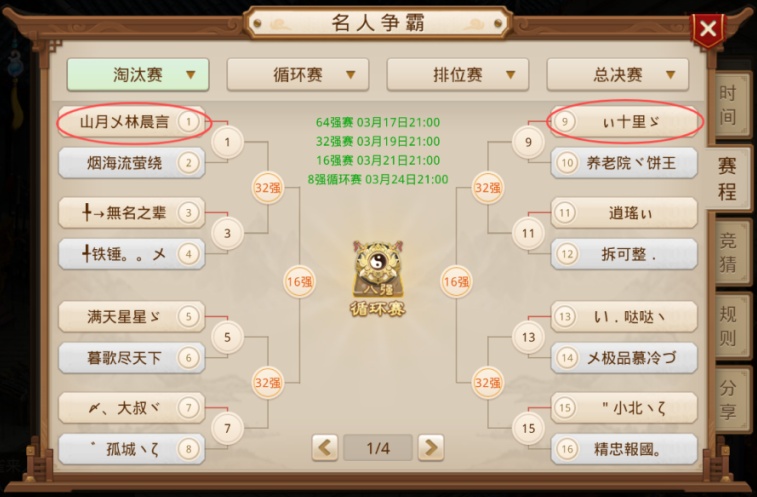 而像5周年、惊天动地、二零一七等种子强队本轮也都是轻松拿下,从匹配情况来看,预计在16强以前都不会遇到太多麻烦,期待他们能够杀出重围,决战云巅!