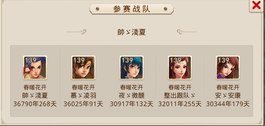 还有2支特别的队伍也在本场比赛发挥亮眼,那就是128强中仅有的2支139级队伍,来自春暖花开的帥ゞ淺夏队和才高八斗的夏花诺℡閃閃队。