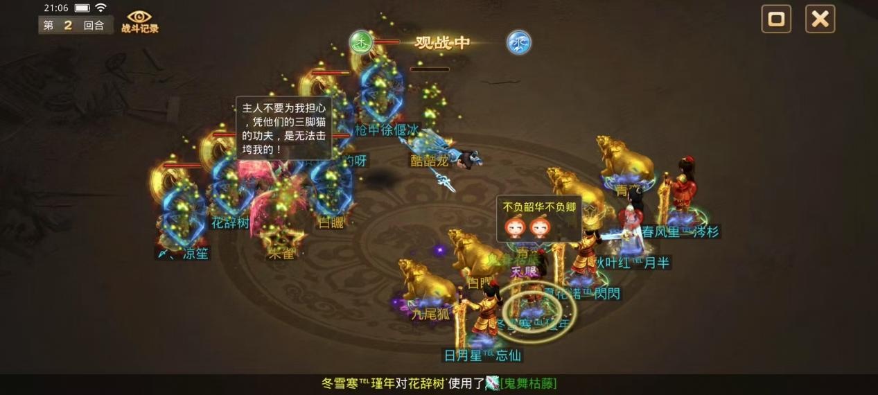 而第二场对局由于没有阵法相克,观战方速度和道行均被全面压制,仅4回合就遗憾落败。