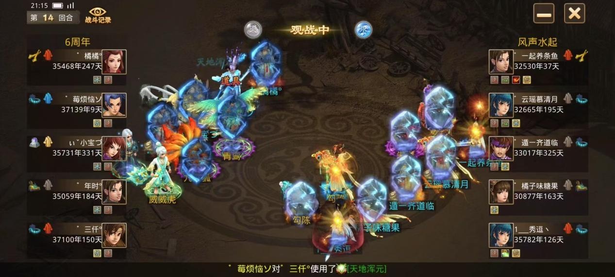 虽然第14回合观战方的控水也冰住5个单位还以颜色,但未障碍住对面最关键的控金和控水,加上自身道行劣势解控太慢,已经无力回天。