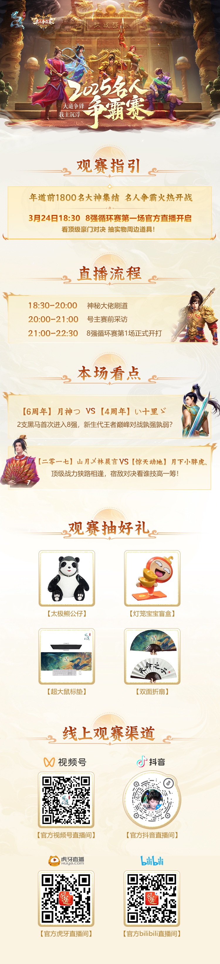 与此同时,名人争霸赛主题短视频有奖征集活动火热进行中!分享观赛看法、竞猜预判,下一个获得爆款奖金、【名人争霸赛小记者】限定称谓的,说不定就是道友你!