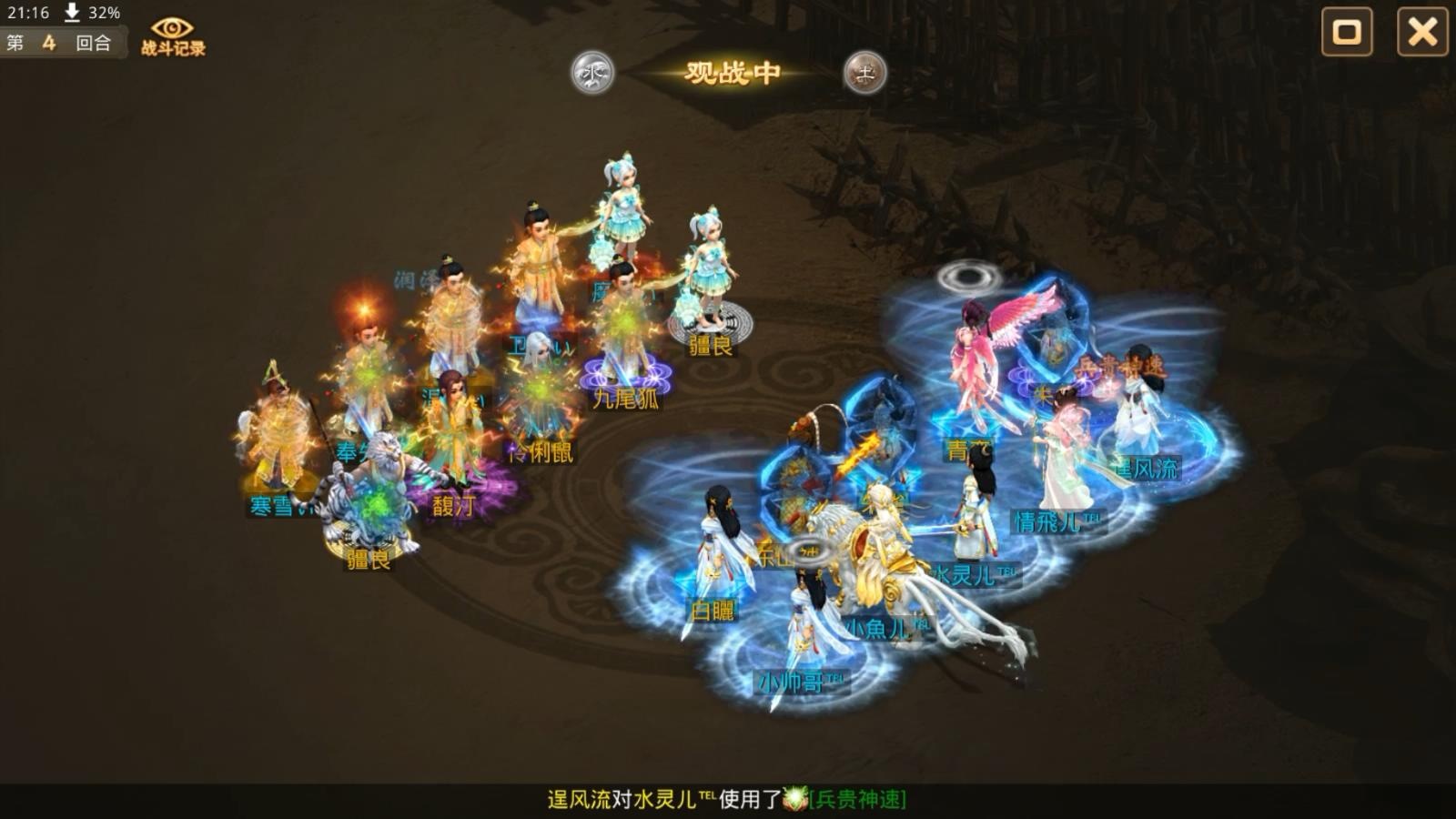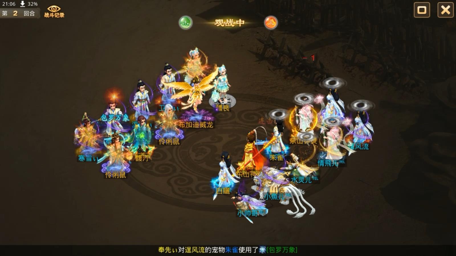 观战方火阵对战对战方木阵,双方互不相克。对战方起手拉速后,控土直接障碍住5个单位,并且发动排山倒海般的攻势。观战方仅有1次有效障碍,加上宠物被快速清场,仅4个回合就败下阵来。