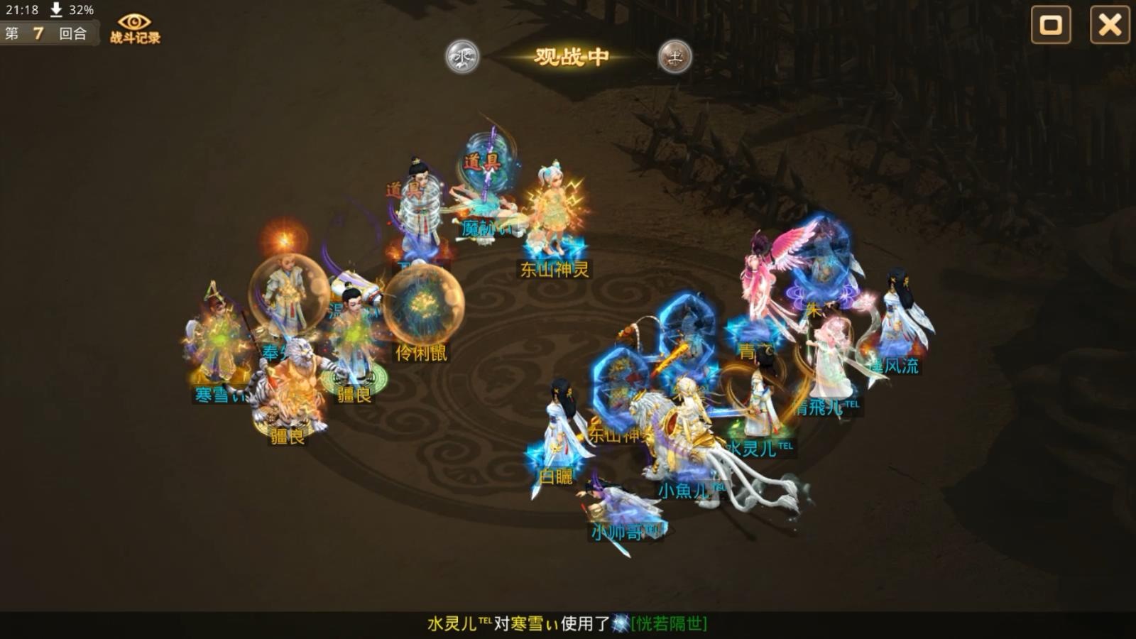 第6-7回合,对战方的控土被游说和力破接连限制,连续2回合没能出手障碍。但是对战方并没有自乱阵脚,耐心用宠物拉人,减少倒地单位,力水见对面毒木凶猛,没有力破反而使出一手包罗万象,成功冰住观战方3只宠物,为后续的反击埋下伏笔。
