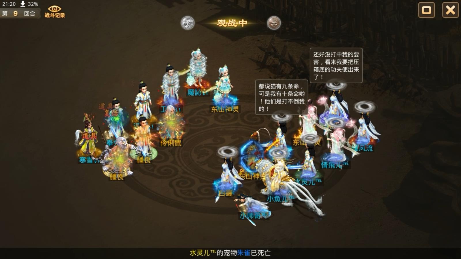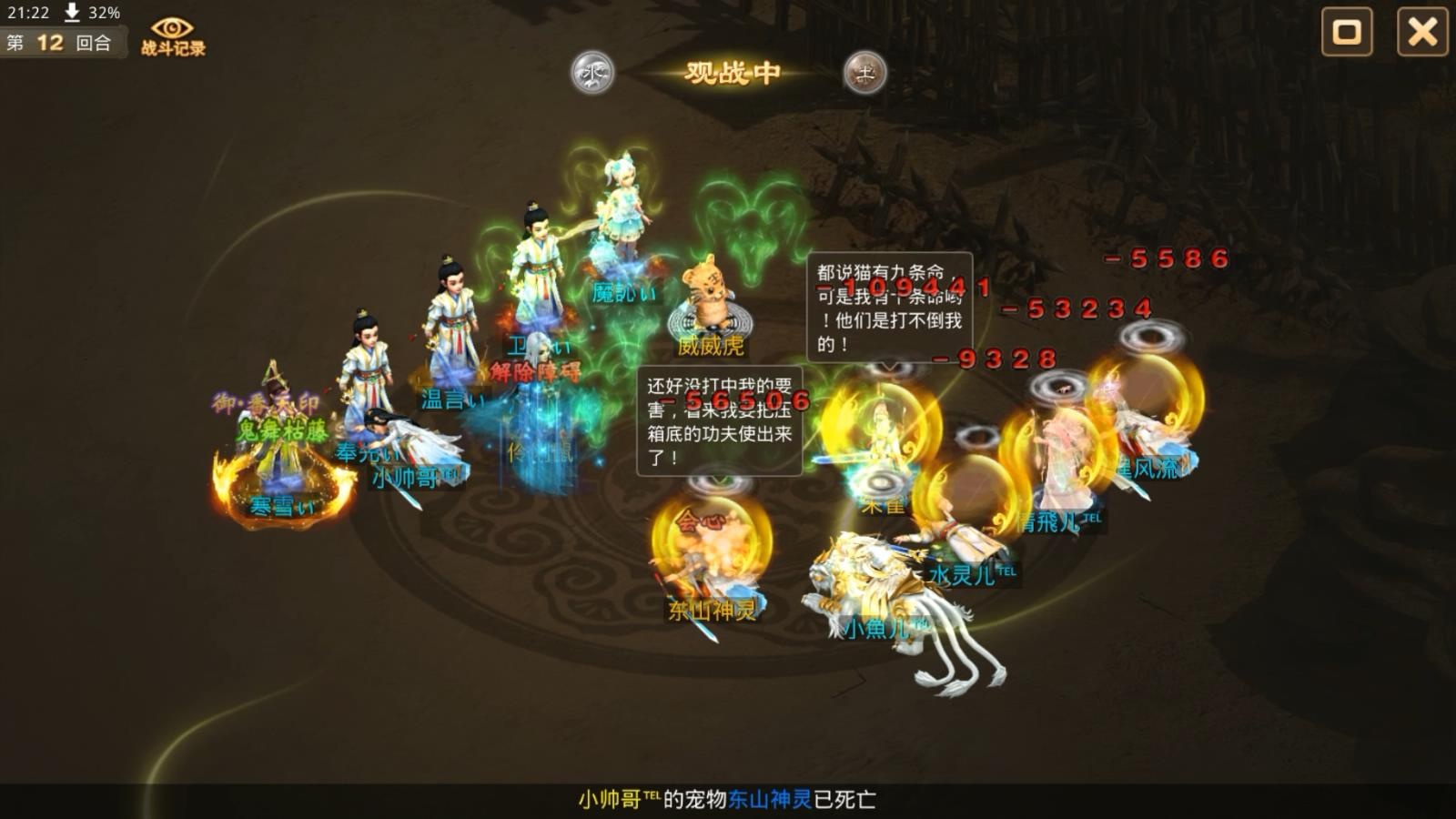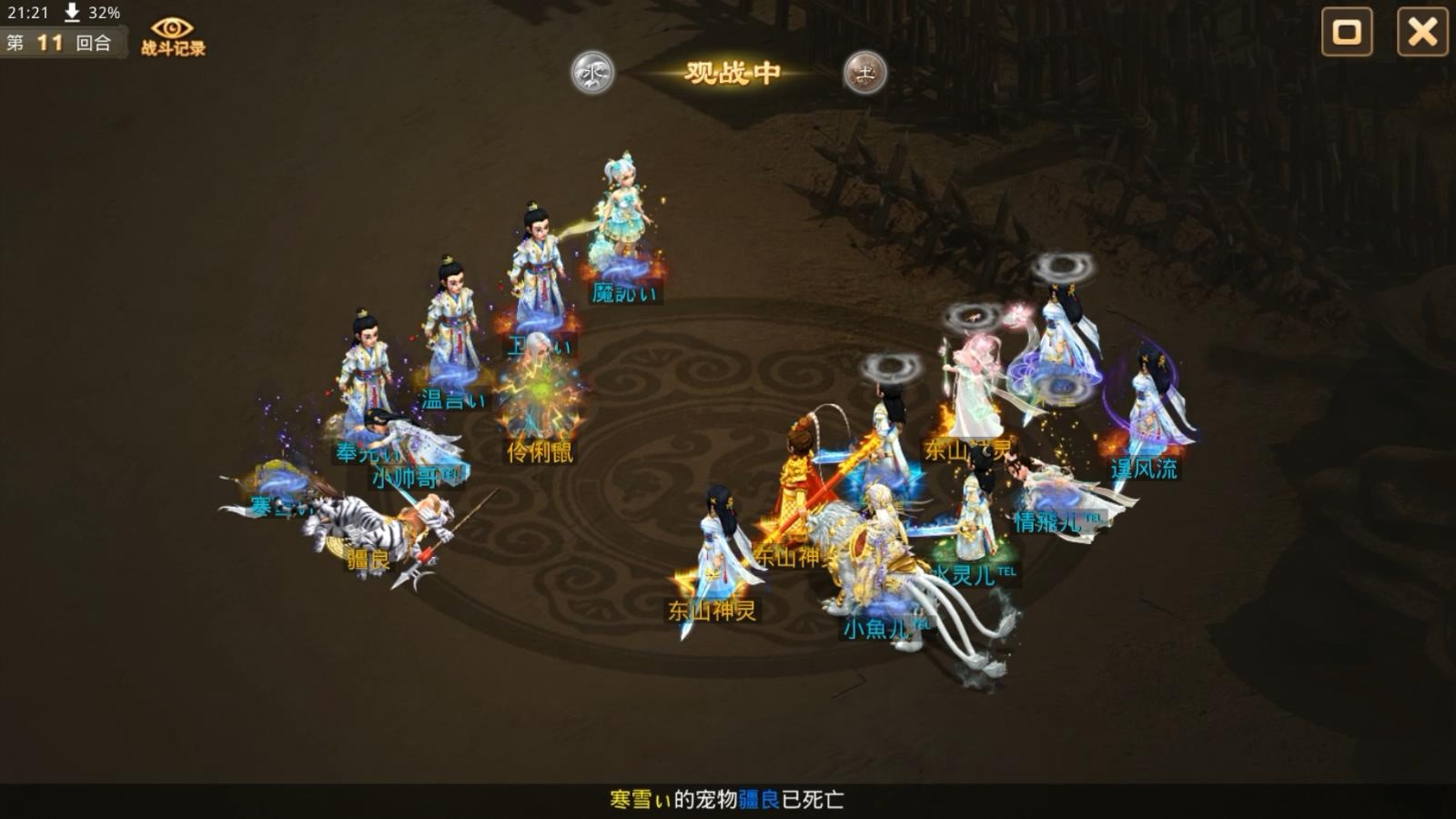 第11回合,对战方宠物在舍身人物后均未复活,场上仅剩1个宠物单位,但人物已经全部解控并有速度加成,发起了全面反击。
