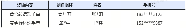 年度资料片浑天宝录专属全服活动的“挑战囚海大赏”抽奖活动已于2025年10月16日11:10结束,现将中奖道友名单公示如下: