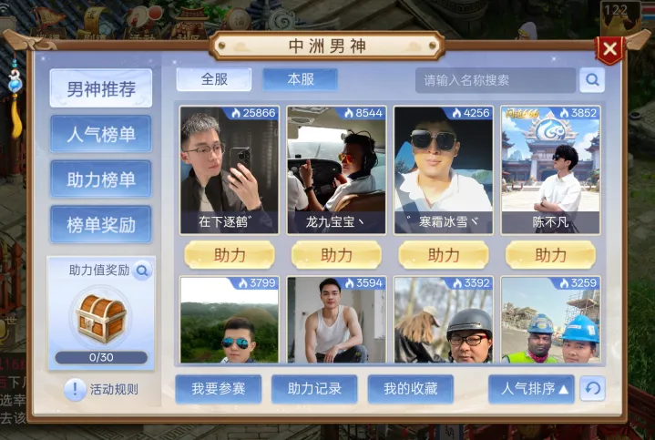 活动期间,全服男道友都可以参与“中洲男神”的评选!