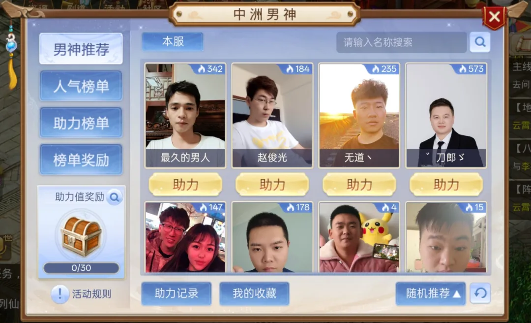 所有道友都可以投票选出你心目中的“中洲男神”!将不同礼物赠送给自己心仪的男神,增加男神人气值的同时,会对应获得等额的助力值~