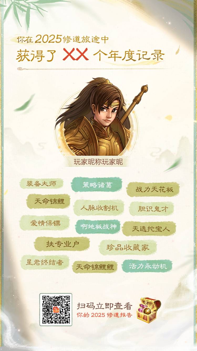 2025年这段修道之路,每个数据都记得,快来查看属于你的年终总结吧~分享活动页面还能获得额外奖励哦!