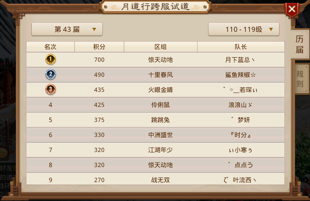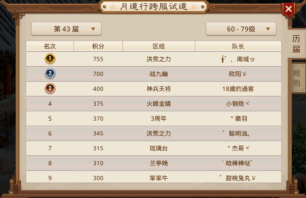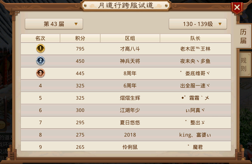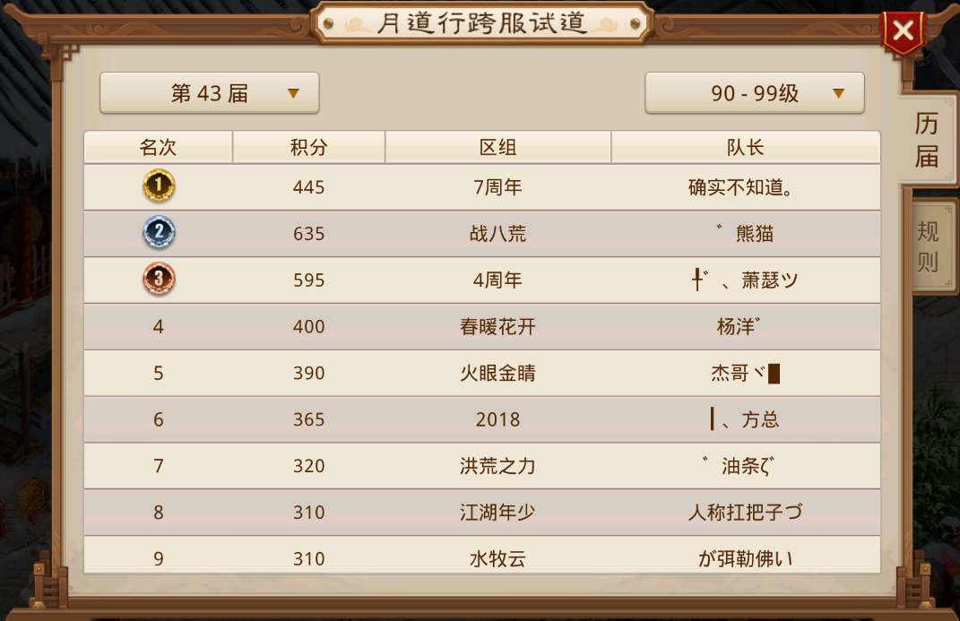 他们常年活跃在大众视野中,跨服试道前六名总能看到他们的身影。此次,仅以一场胜利的积分之差位居第四名。