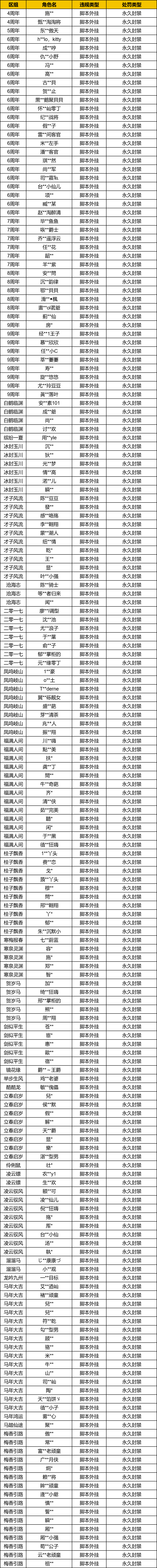 以下为2月23日~3月1日外挂处罚名单公示:
