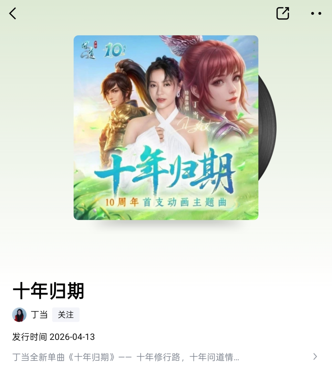 这首10周年主题曲《十年归期》,已经上架各大音乐平台,道友们可以开始单曲循环啦~