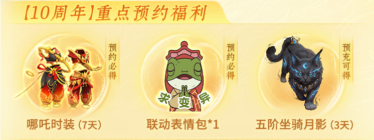 预约就有的哪吒时装、登录就送的畅享福利、全服连抽14天变异等厚礼……助道友10年圆梦!