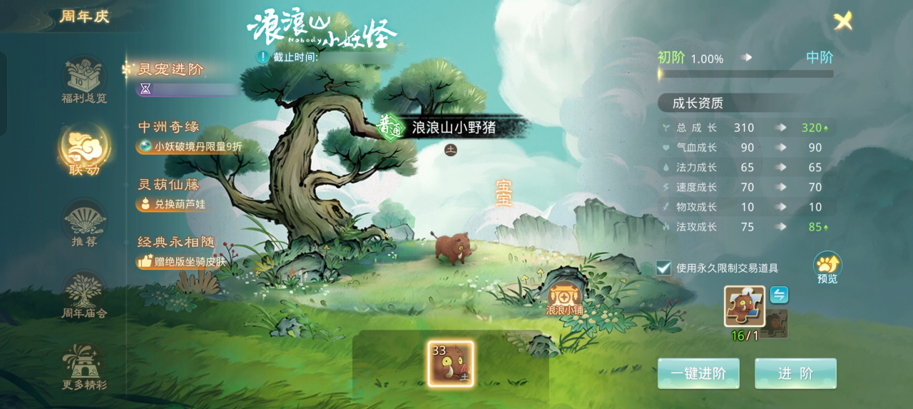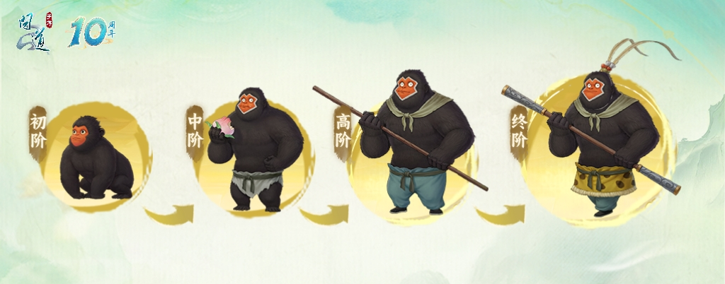 问道10周年,小妖怪们来到中洲成为周年宠,拥有和电影里一样4档进阶的成长路径!可以“打怪”升级,不断攀登!