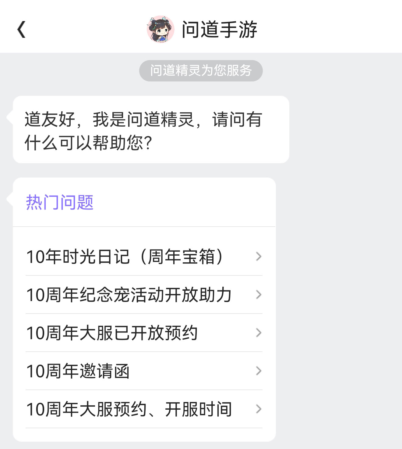 各位道友好!10周年的活动丰富多样,也让道友们目不暇接,怎样能最方便快捷地了解官方活动、福利详情呢?今天教给大家一招:找问道精灵,一问就有答案!