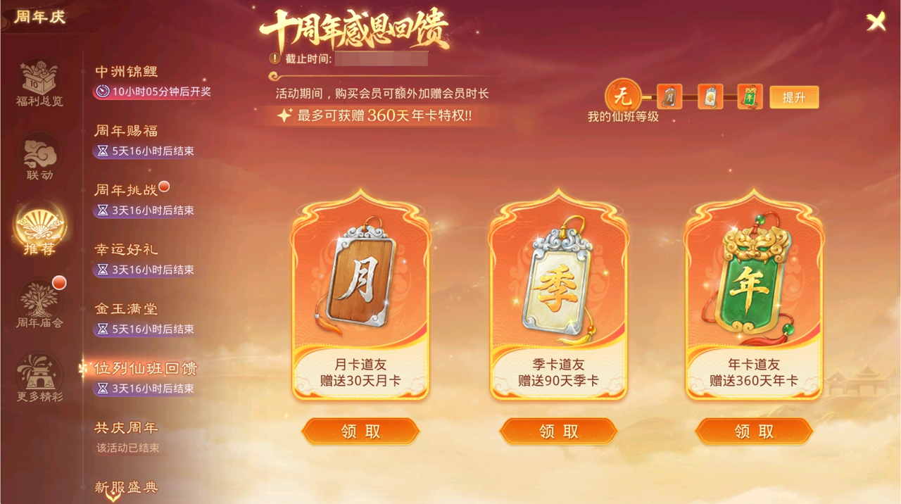 赠送的位列仙班特权时间,在4月24日11:00后开放领取,道友需要进入游戏打开周年庆专属活动界面进行领取。