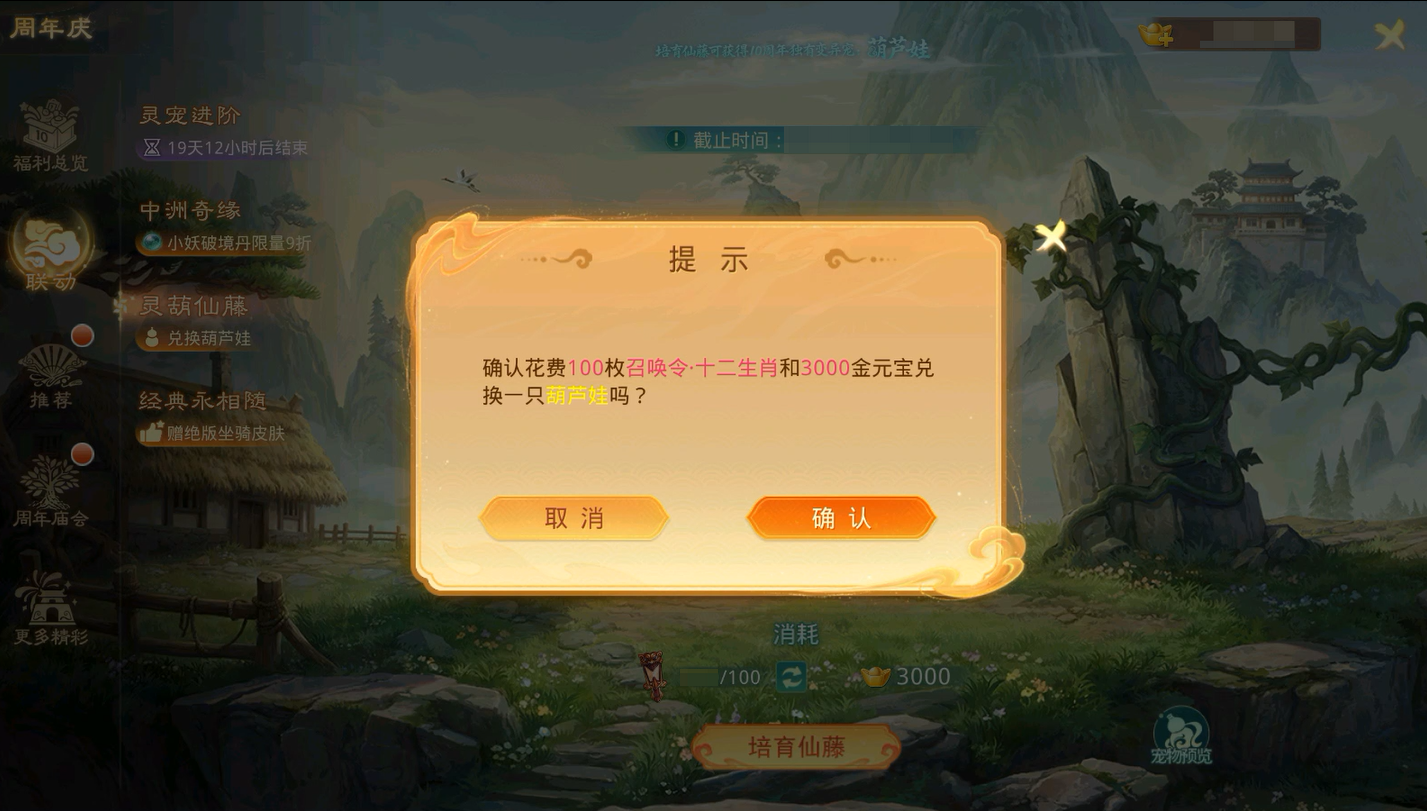 Q:新变异【葫芦娃】怎么获得,老区能兑换吗?灵葫仙藤活动有时效吗?