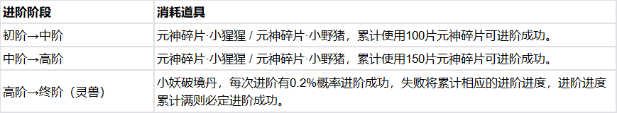② 拥有进阶进度的宠物交易、赠送后,进阶进度将清零。