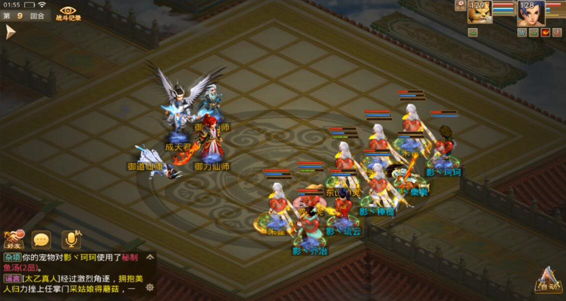 木补心,水补防,简单来说就是木一直心,水一直拉防,这个方法有点笨,但是很实用。其他人可以看情况补血补蓝,或者破御道的珠子,敏火注意拉速度,因为对方怪物有剪刀法宝效果,搞不好就把辅助状态给你破掉了,宠物继续攻击御道。