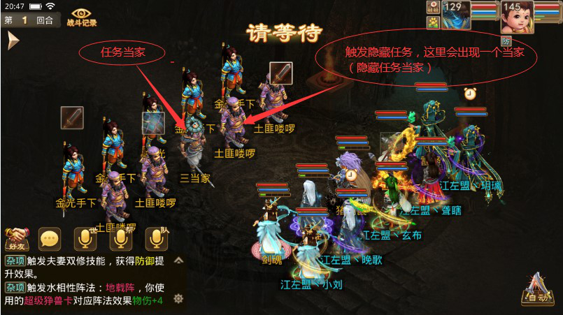 隐藏任务兄弟齐整注意事项:会出一个新的当家,也不能击败,击败的话隐藏任务会失败。