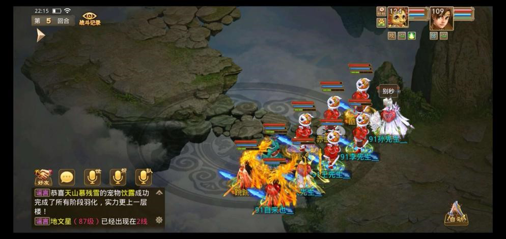 这里需要特别注意,这回合不能全部打死,必须留1~2个残血的小怪,留到下回合集体养精蓄锐用,根据怪物的血量以及大概计算一下自己队伍的输出伤害,伤害不够就全力输出,感觉伤害溢出了就选择部分队员、宝宝回状态或者防御。然后选择一个队伍最慢的宝宝养精蓄锐(建议用法宝宝因为可以秒2)。