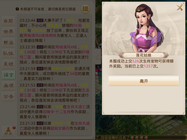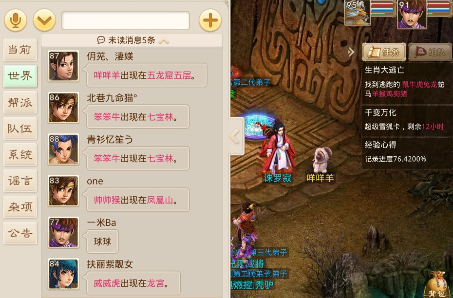 继上一次的随机世界事件守护南天门出现之后,我们区终于再次触发随机世界事件——生肖大逃亡。所以我,又顺带截了好多图,给大家带来这篇生肖大逃亡的攻略。