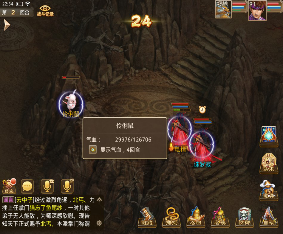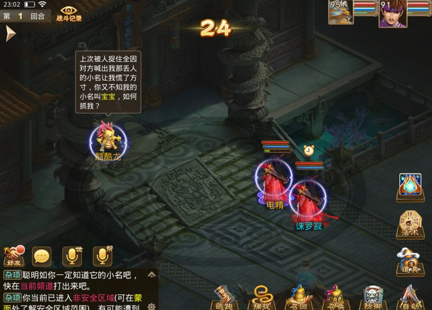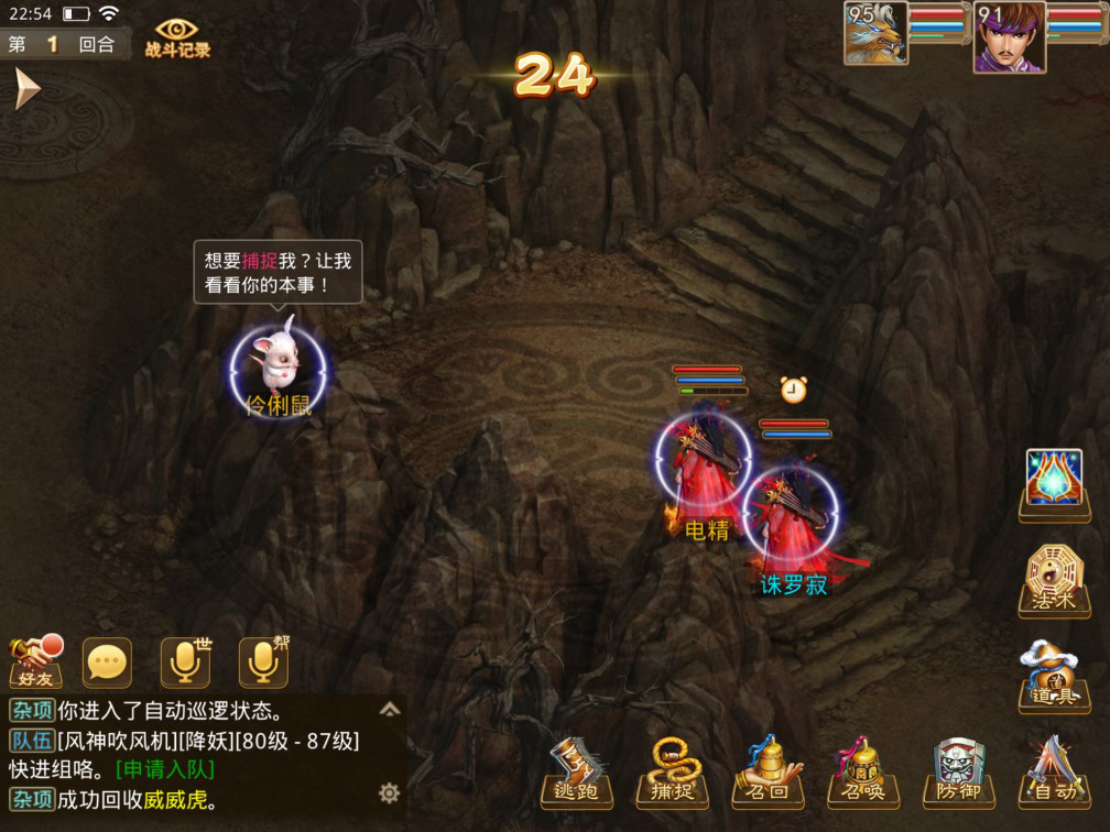 第二种是需要与生肖宠战斗,将其打残然后点捕捉,才能抓捕成功(打残程度需要自己掌握,下图血量就可以捕捉成功,大家不会的可以先开眼尝试一下).