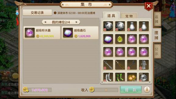 6、摆摊部分稀有物品需要进行公示12小时,公示期内只可收藏,不可购买。
