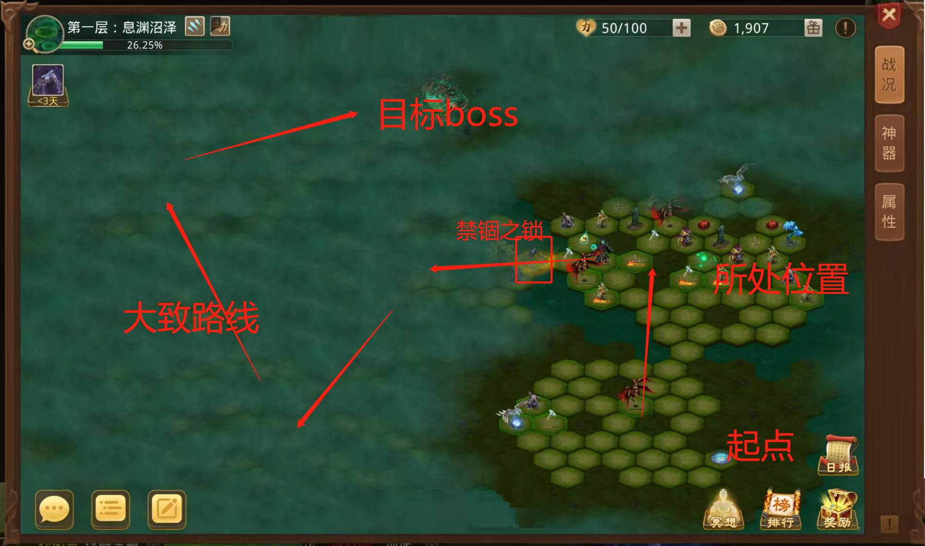 a.未到达禁锢之锁(占领目标已达到),确定一条最短路线(禁锢之锁在左侧):3号