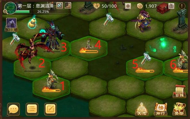 在已解锁的6个格子中,1/2/3/6均为战斗事件,4/5则是趣味游戏。