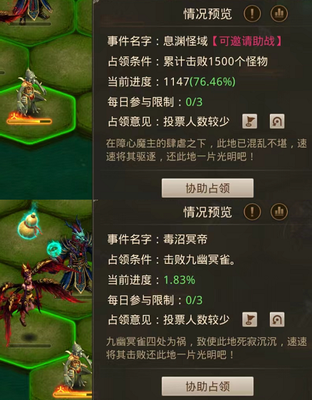 ①占领条件随我们在九幽中事件完成的进度而动态变化,
